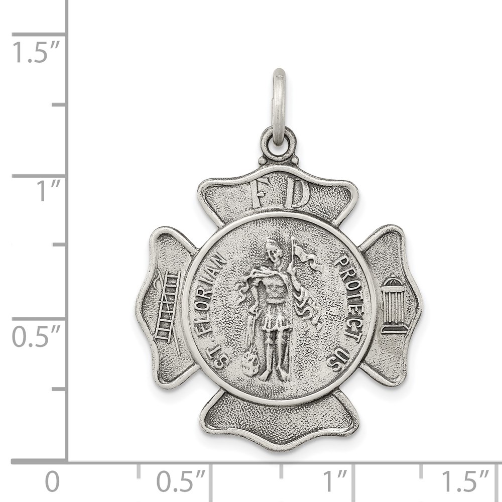 Sterling Silver Antiqued Saint Florian Badge Medal
