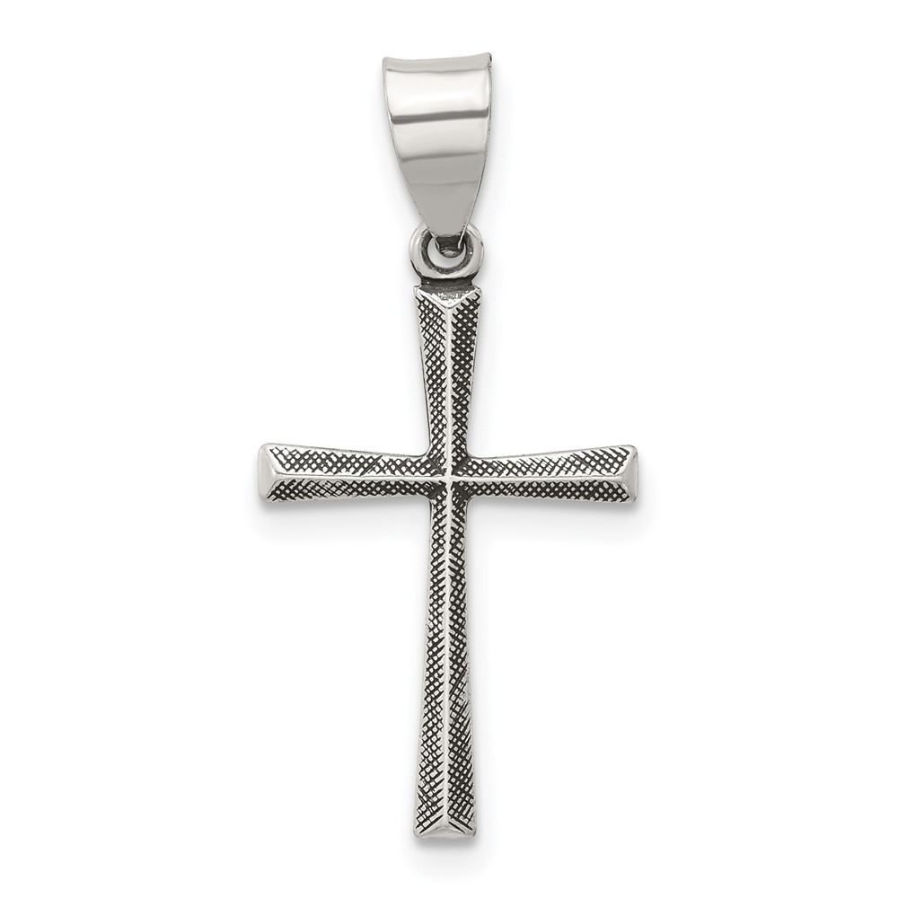 Sterling Silver Antiqued Solid Textured Latin Cross Pendant