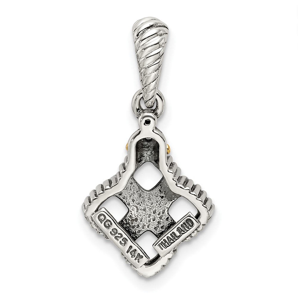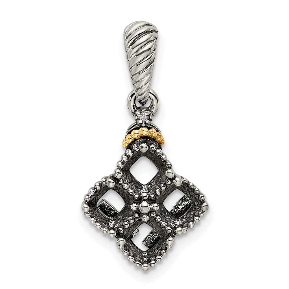 Sterling Silver Antiqued w/14k 4-stone w/Diamond Mothers Pendant Semi-Mount