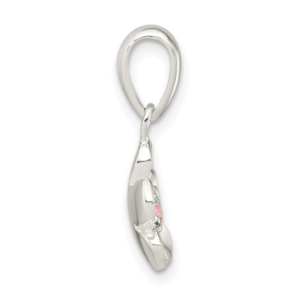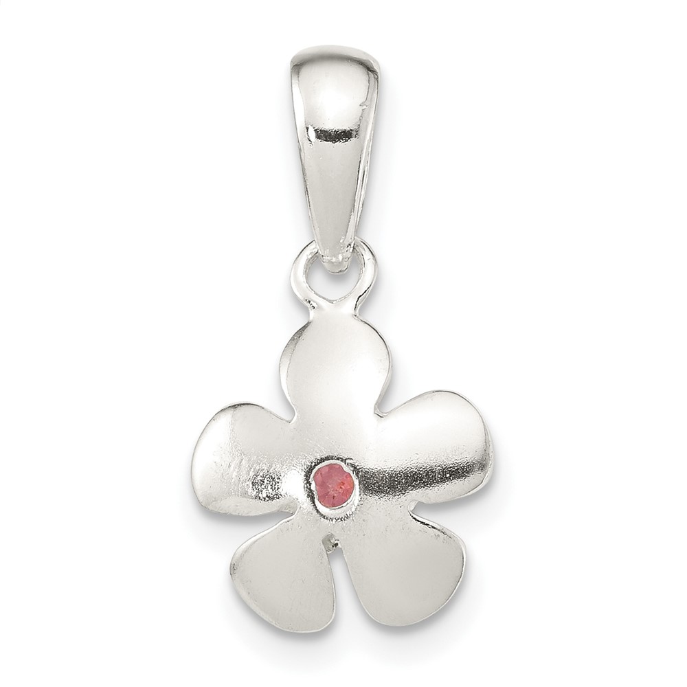 Sterling Silver Brushed & Polished Pink CZ Flower Pendant