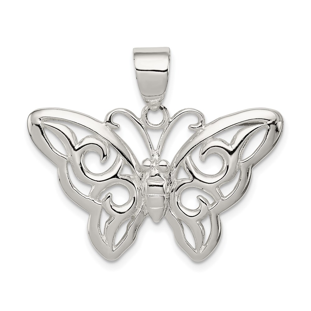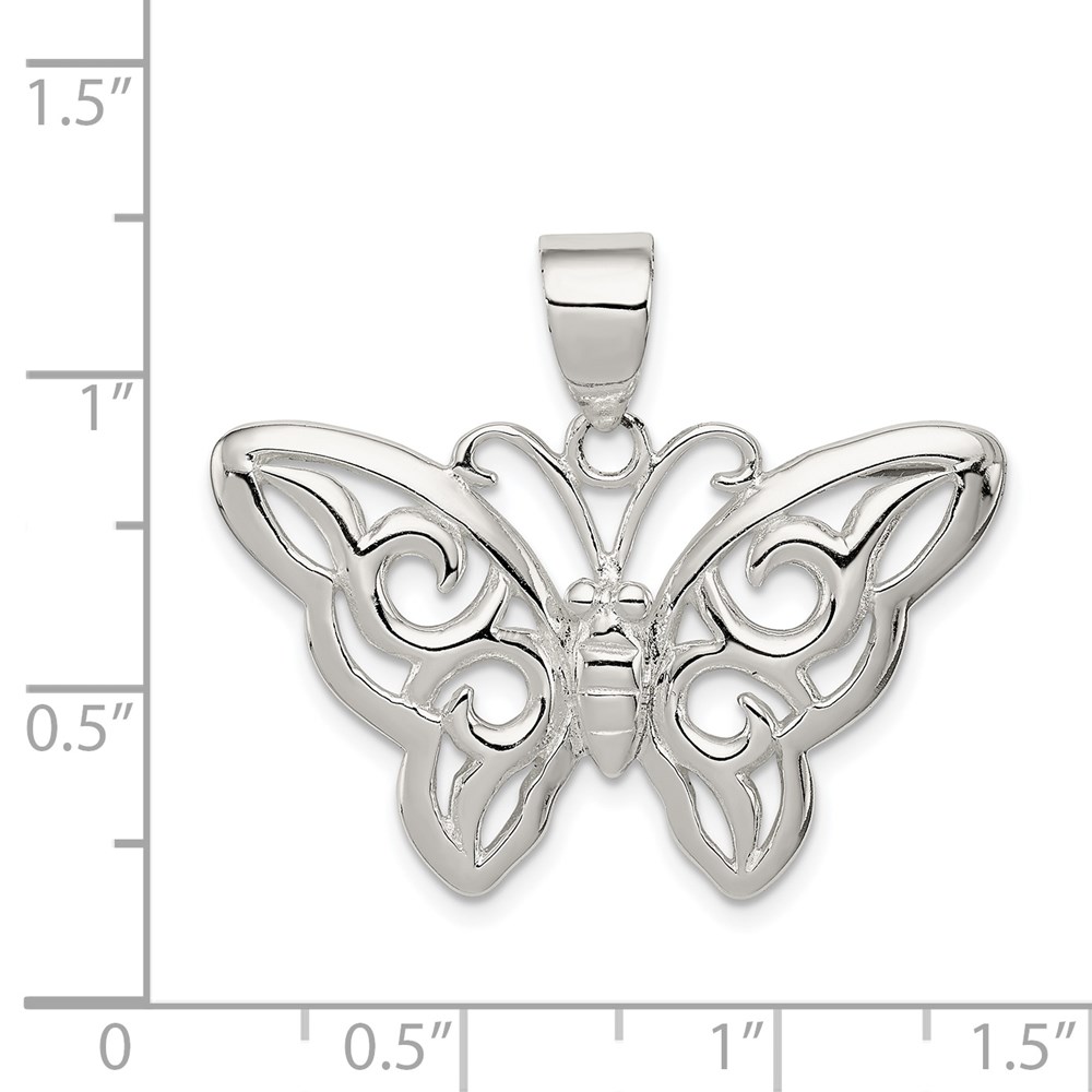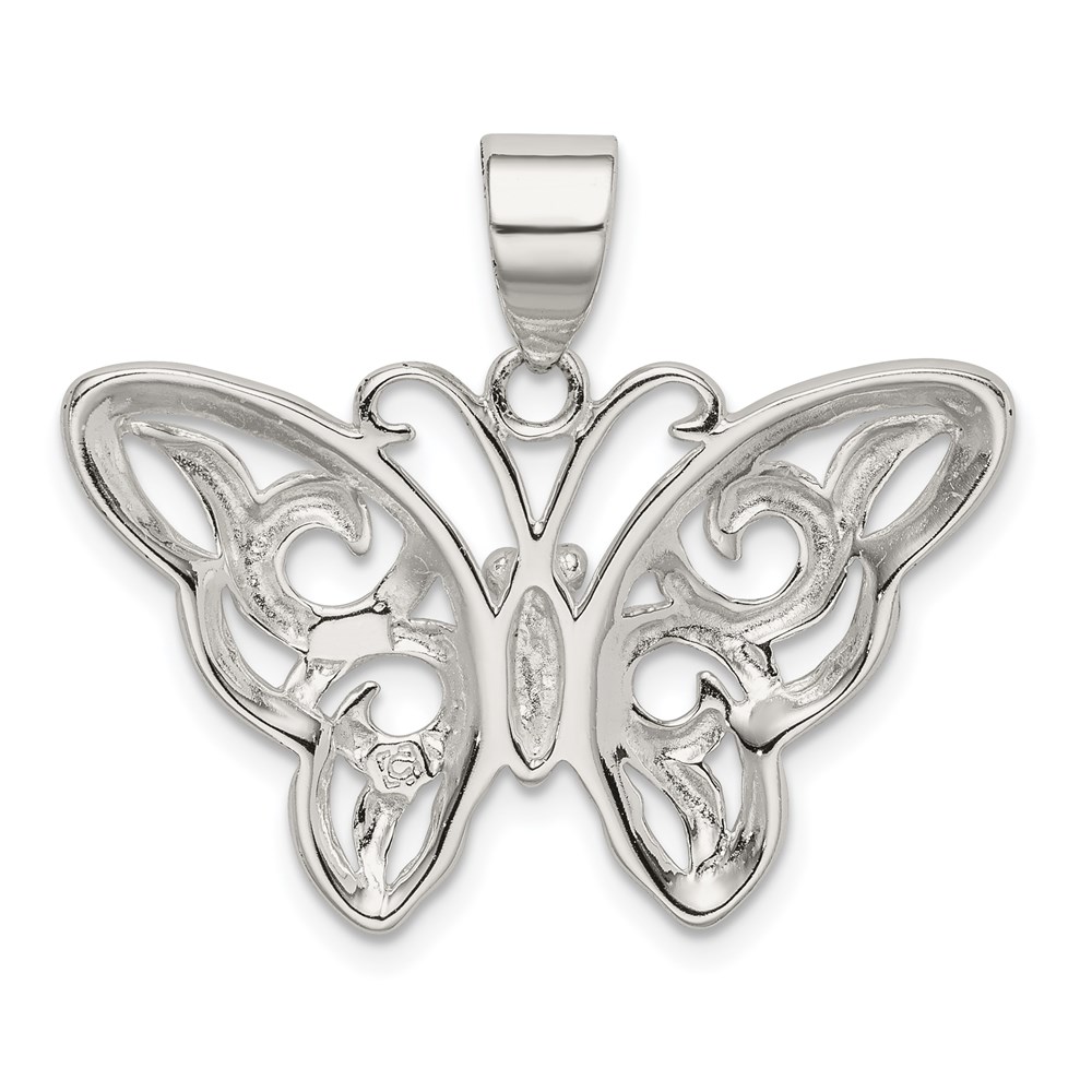 Sterling Silver Filigree Fancy Mother of Pearl Butterfly Pendant
