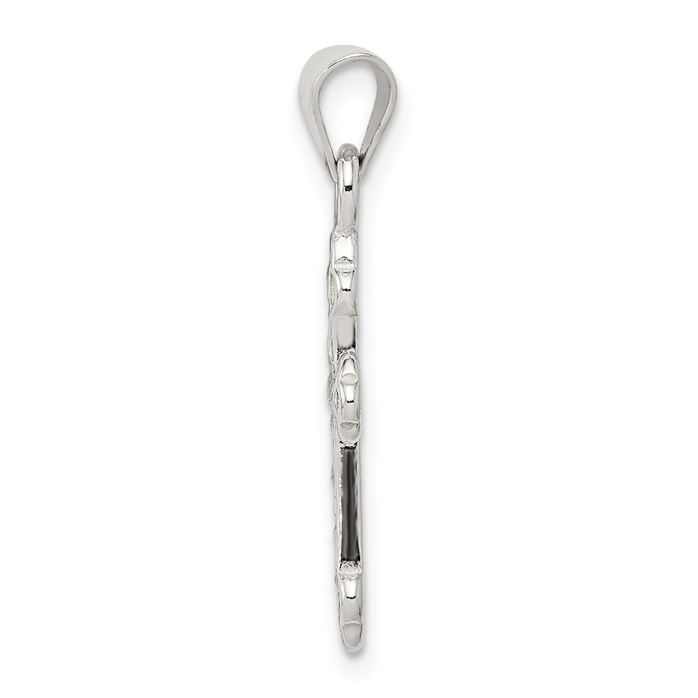 14k White Gold 1/10 carat Diamond Filigree Budded Cross Pendant