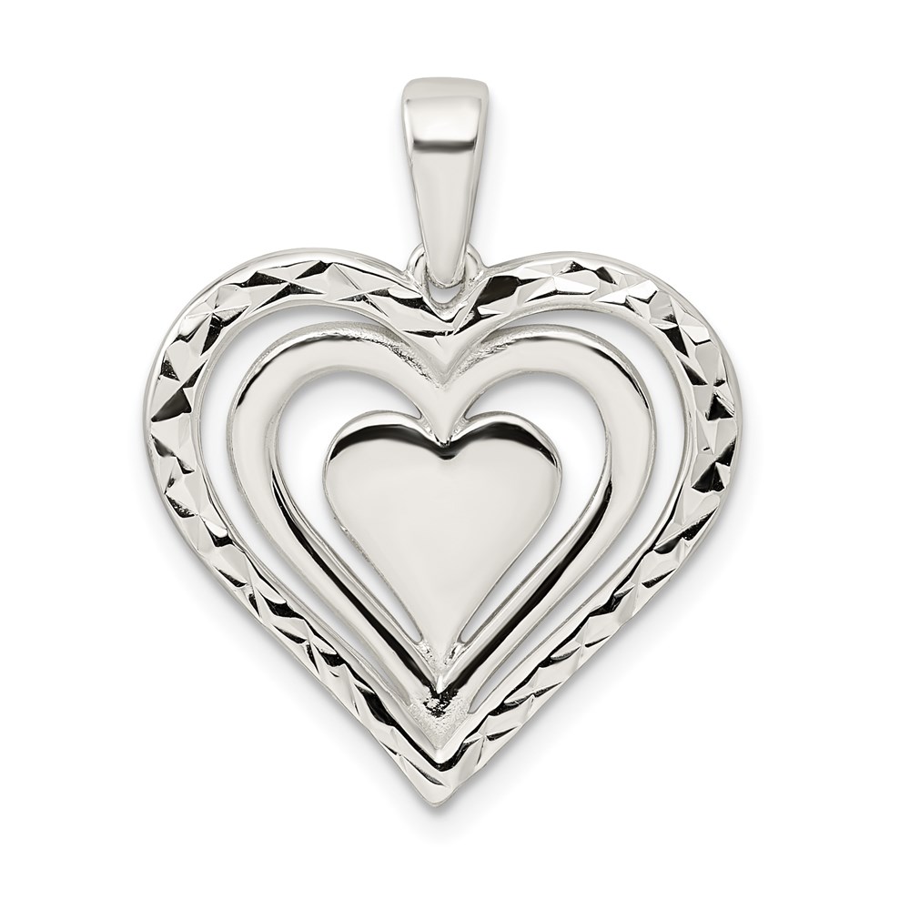 Sterling Silver Diamond-cut Heart Pendant