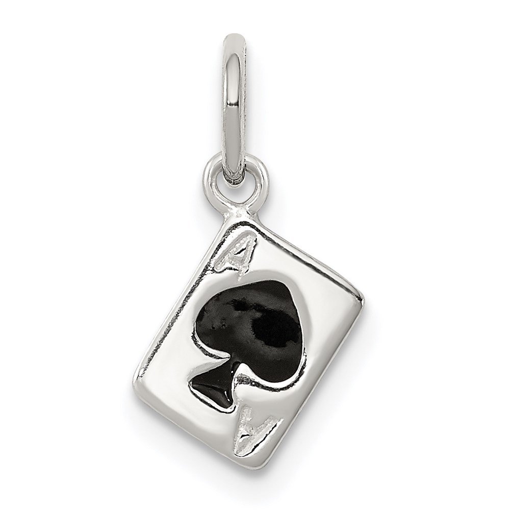 Sterling Silver Enameled Ace Of Spades Card Charm