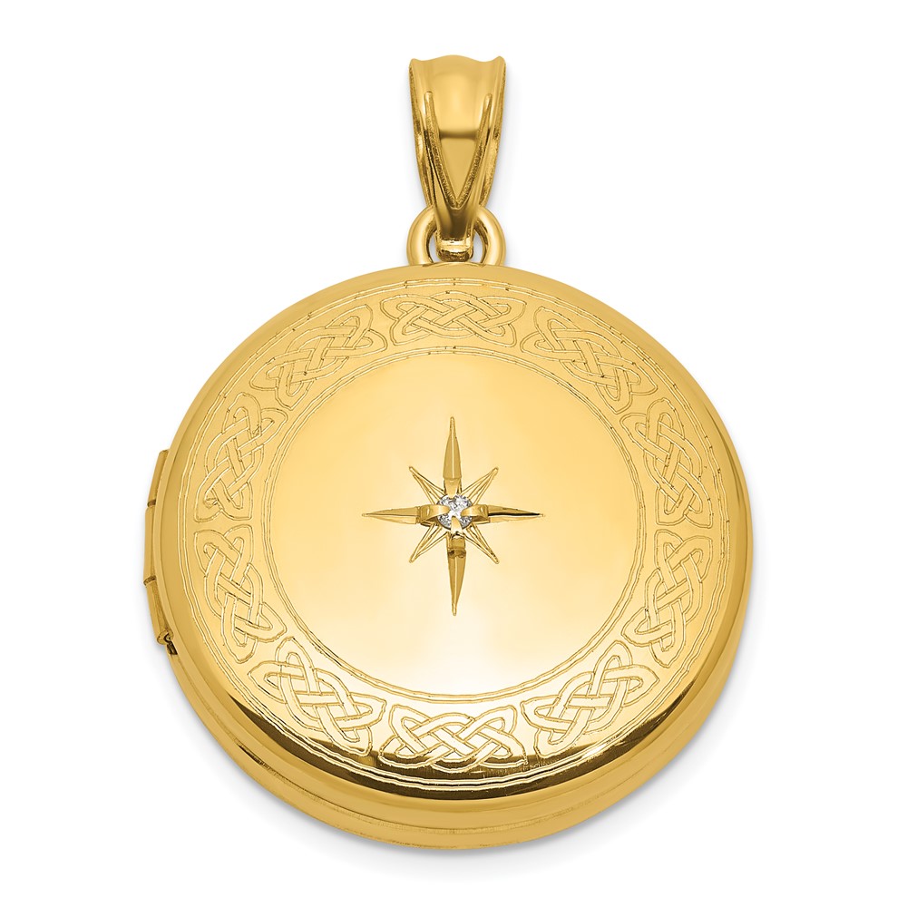 Sterling Silver Gold-plated Polished Front/Brushed Back 1/20 carat Diamond with Celtic Knot Border 20mm Round Locket