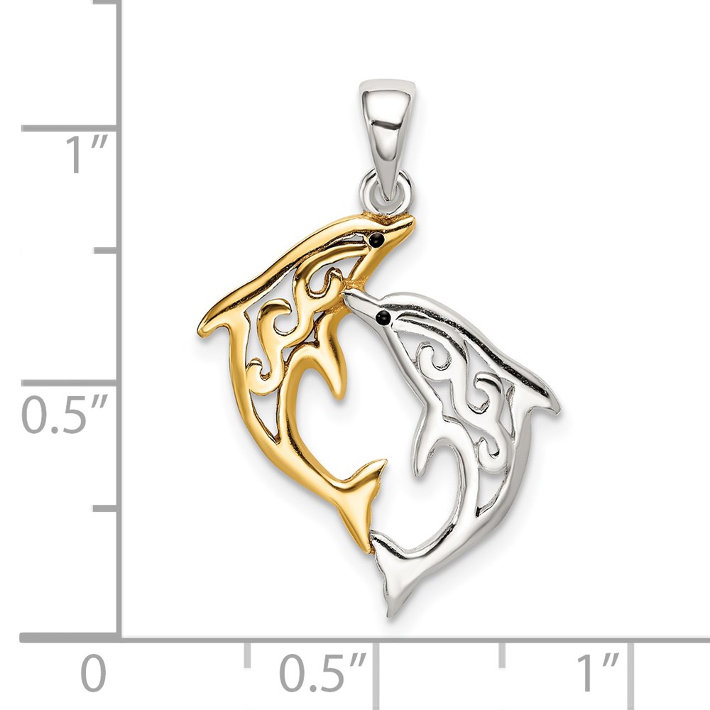Sterling Silver & Gold-tone Enameled Filigree Dolphins Pendant