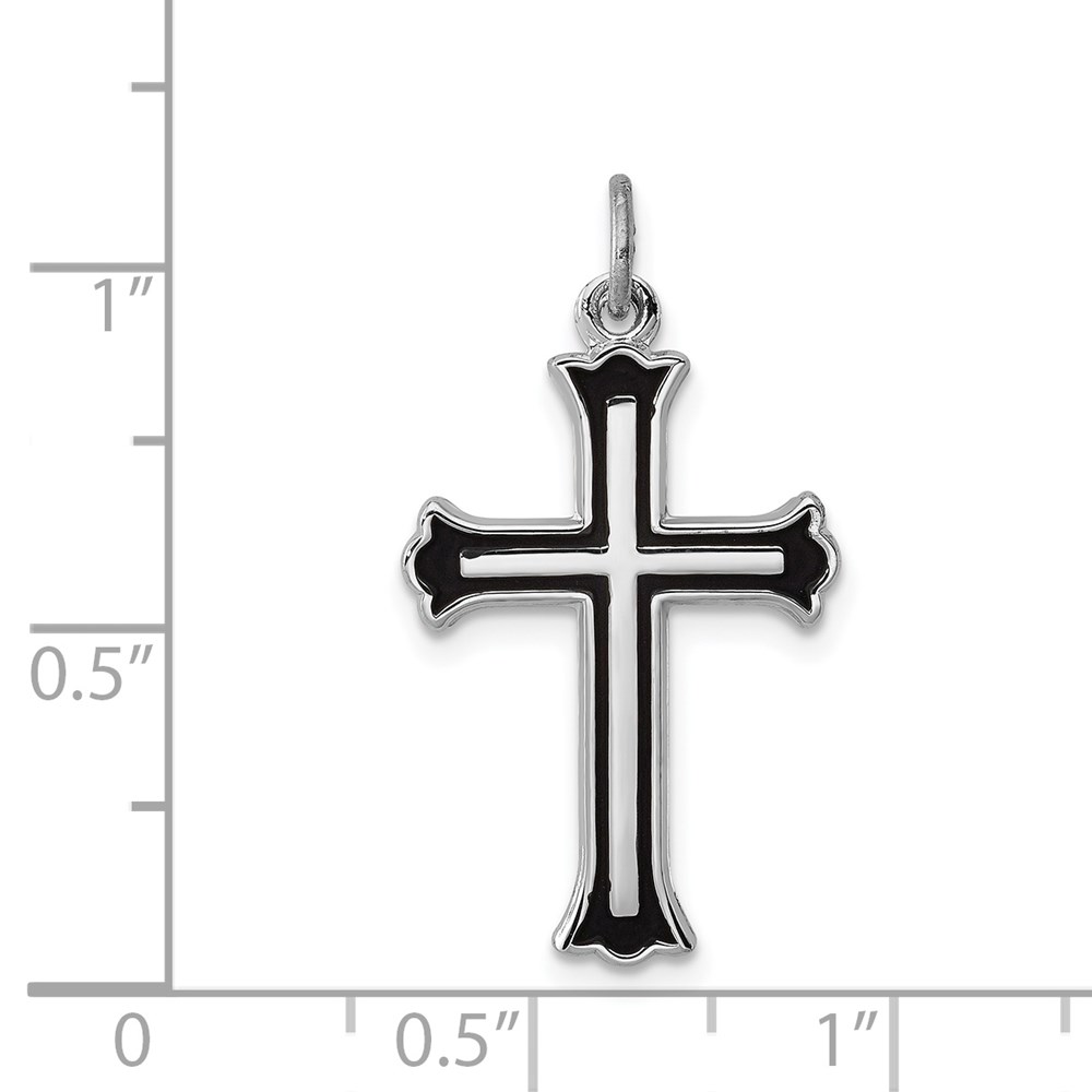 Sterling Silver Platinum-plated Enameled Cross Charm