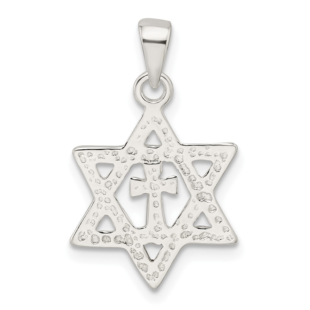 Sterling Silver Polished and D/C Star of David w/Cross Pendant