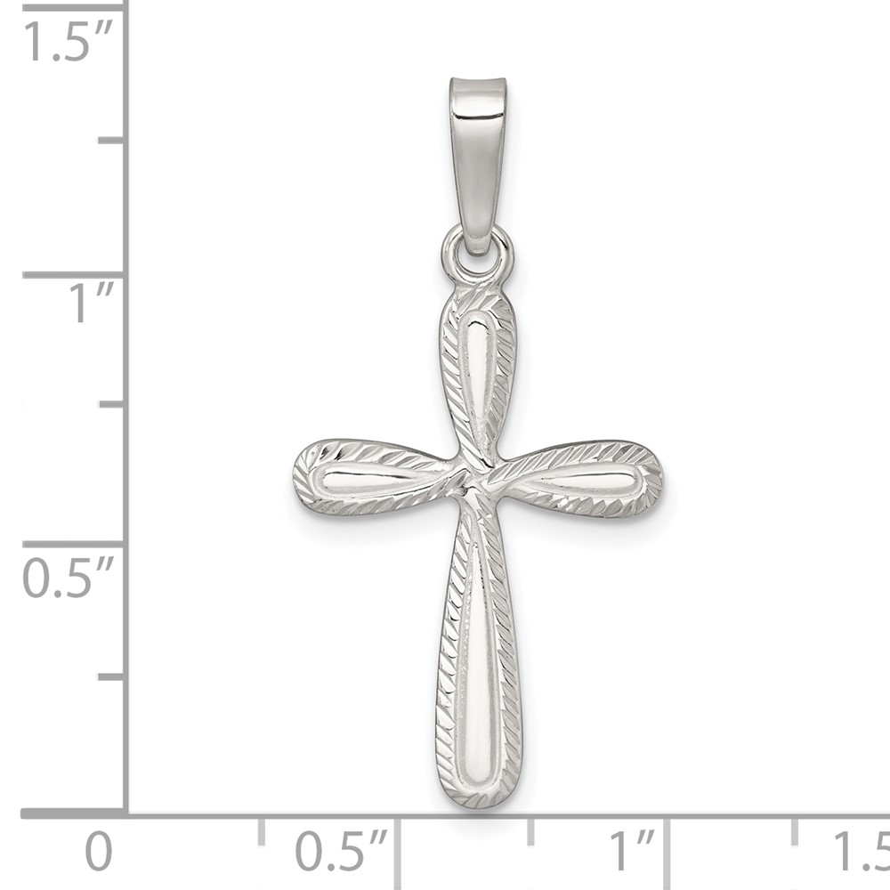 Sterling Silver Polished and Diamond-cut Cross Pendant