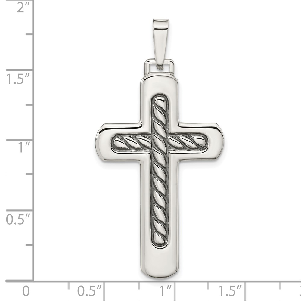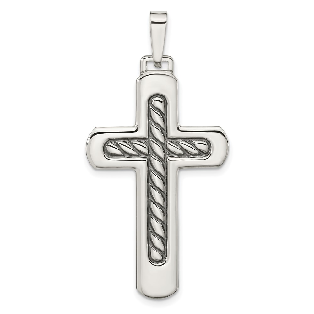 Sterling Silver Polished & Antiqued Textured Center Cross Pendant