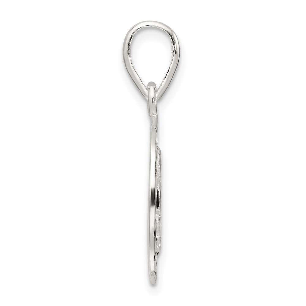 Sterling Silver Polished Enamel Luck with Clover Round Pendant