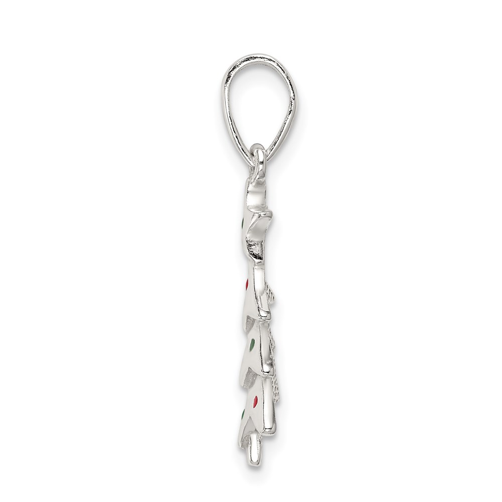 Sterling Silver Polished Enameled Christmas Tree Pendant
