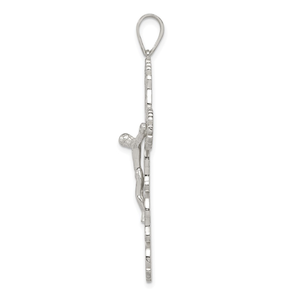 Sterling Silver Polished Filigree Cross Crucifix Pendant