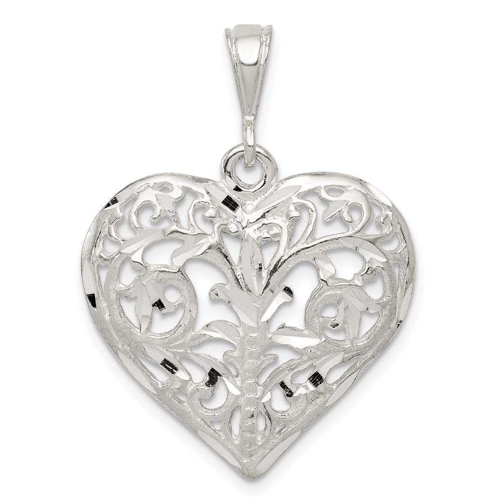 Sterling Silver Polished Filigree Heart Pendant