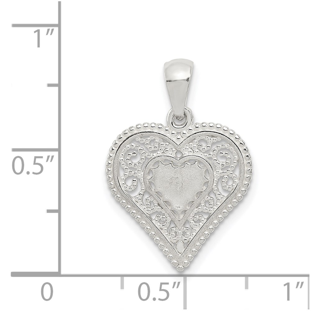 Sterling Silver Polished Filigree Heart Pendant