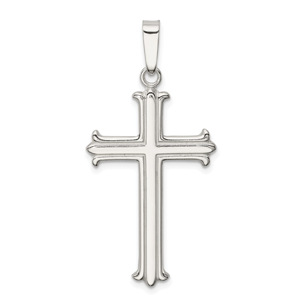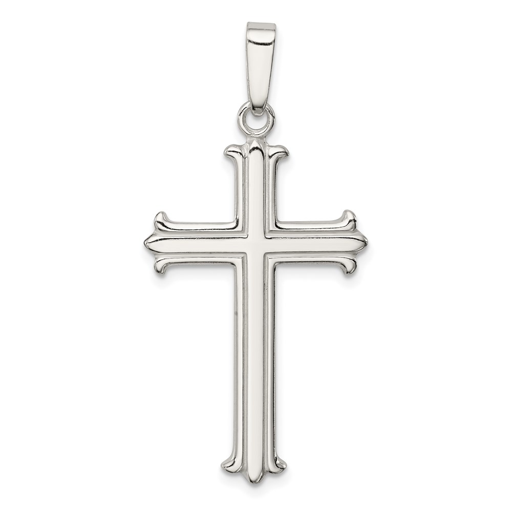 Sterling Silver Polished Fleur De Lis Cross Pendant
