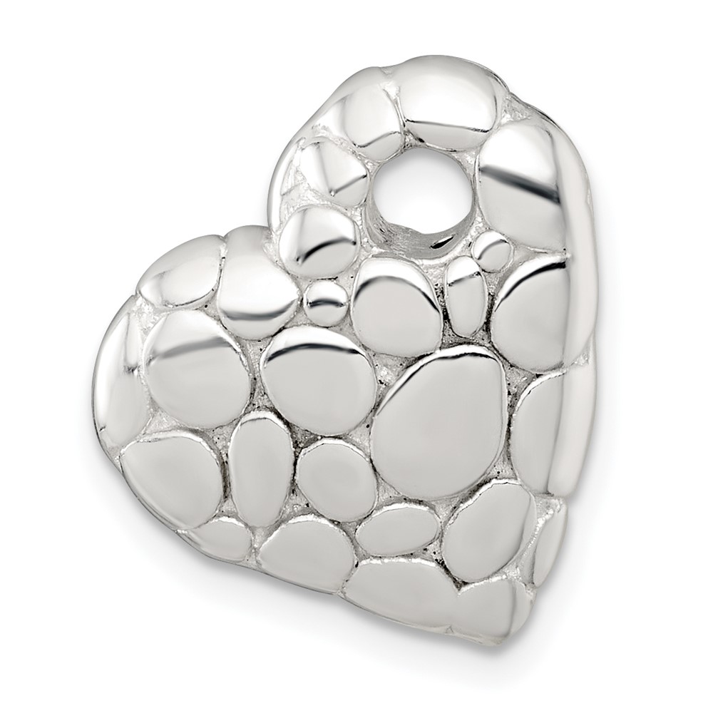 Sterling Silver Polished Pebbled Heart Chain Slide Pendant