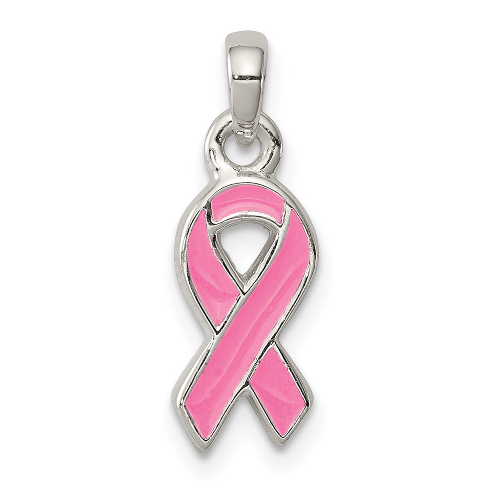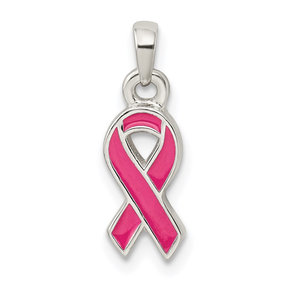 Sterling Silver Polished Pink Enameled Ribbon Pendant