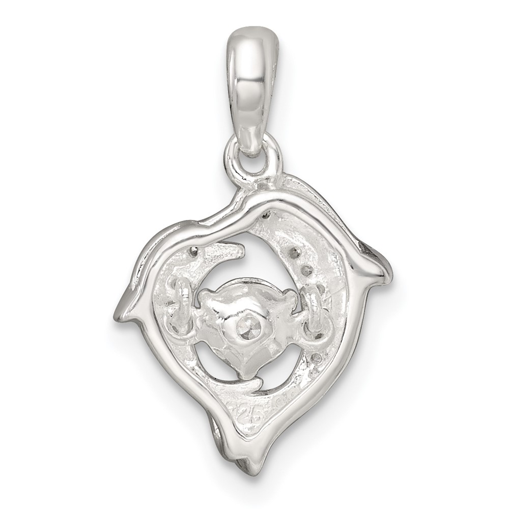 Sterling Silver Polished Vibrant Moving CZ 2-Dolphin Pendant