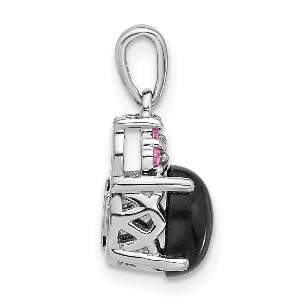 Sterling Silver Rh-plated Blk Onyx .08Cr.Pink Sapphire .005ct Dia. Pendant