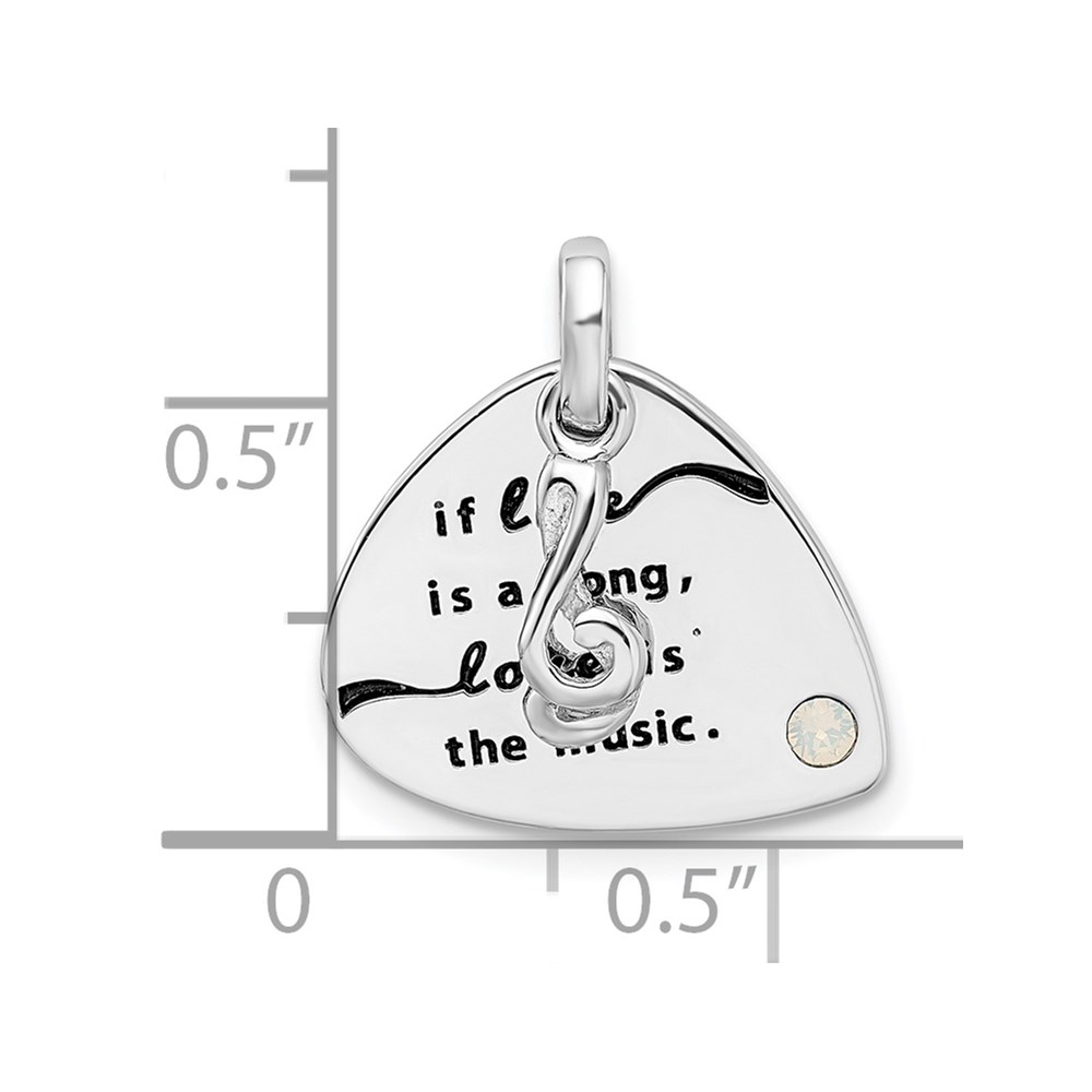 Sterling Silver RH-plated Crystal Antique Guitar Pendant