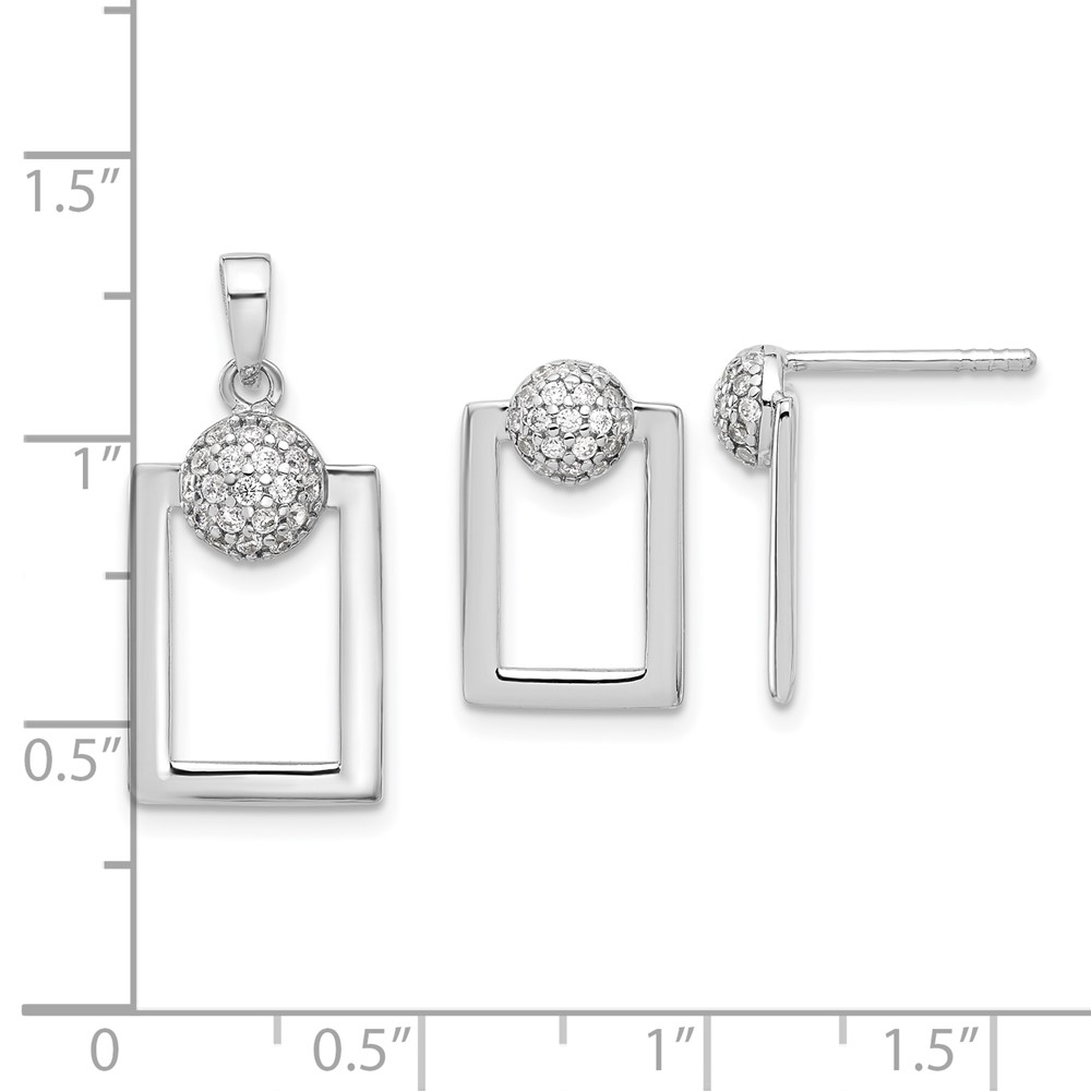 Sterling Silver RH-plated Micro Pave CZ Rectangle Earrings and Pendant Set