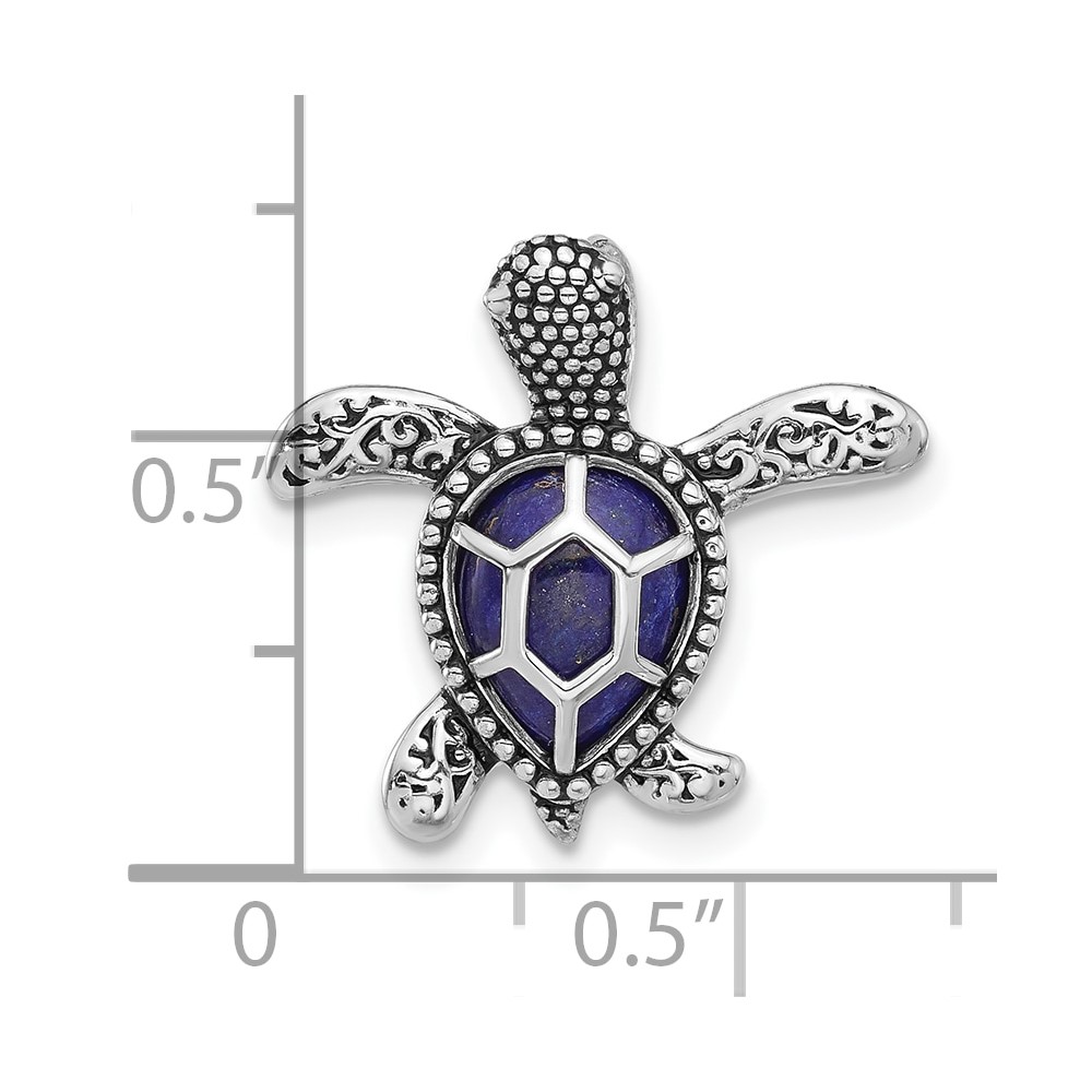 Sterling Silver Rh-plated Polished and Antiqued Lapis Turtle Chain Slide