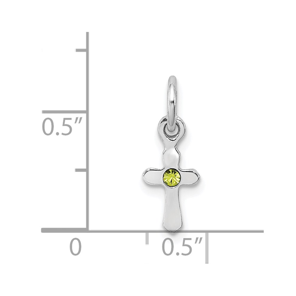 Sterling Silver RH-pltd Child’s Aug Lt Green Preciosca Crystal Cross Penda