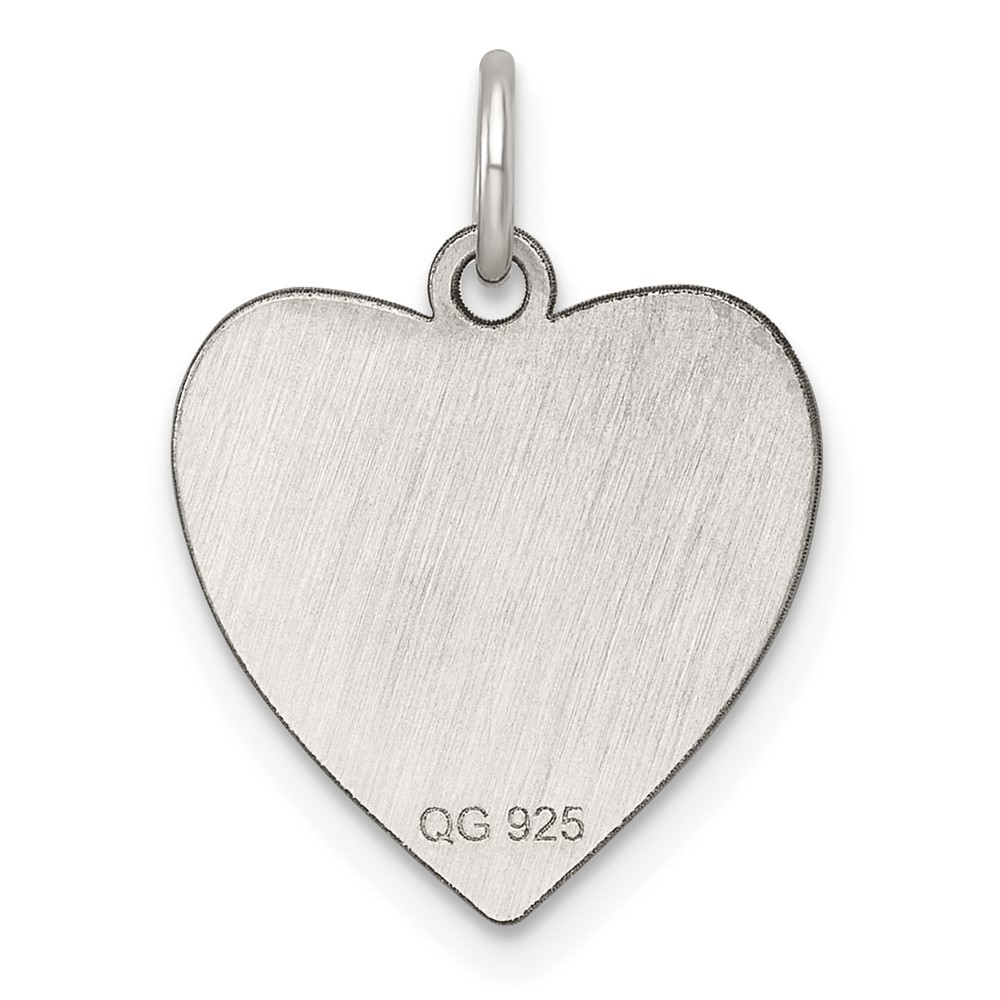 Sterling Silver Rhod-plated Eng. Heart Polish Front/Satin Back Disc Charm