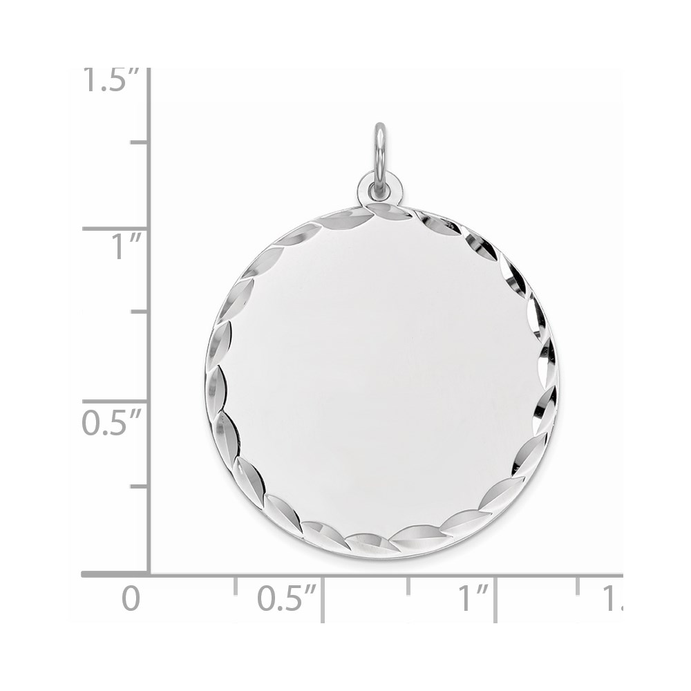 Sterling Silver Rhod-plated Eng. Rnd Polish Front/Satin Back Disc Charm