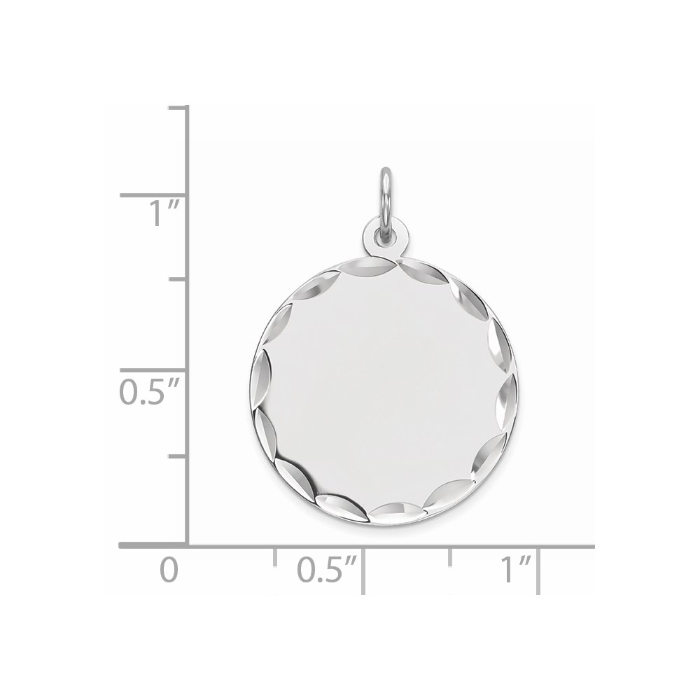 Sterling Silver Rhod-plated Eng. Rnd Polish Front/Satin Back Disc Charm