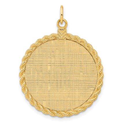 14k Plain .013 Gauge Round Engravable 24.9mm Disc with Rope Edge Charm
