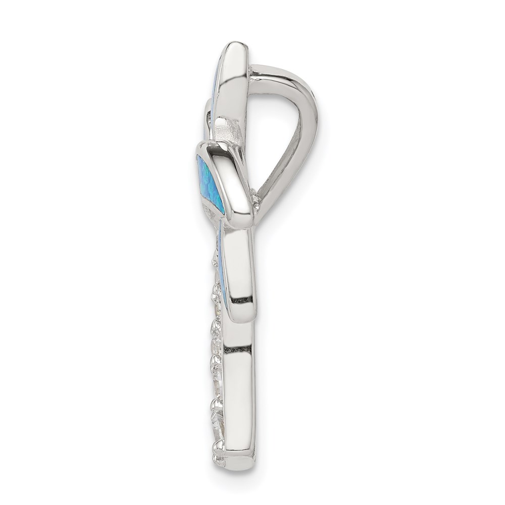 Sterling Silver Rhod-pltd CZ Blue Inlay Created Opal Palm Tree Slide
