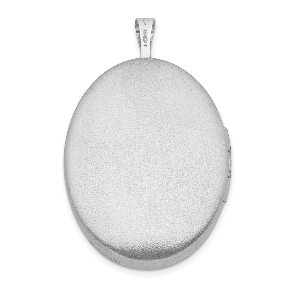 Sterling Silver Rhodium-plated 26mm Leaf Border Oval Locket
