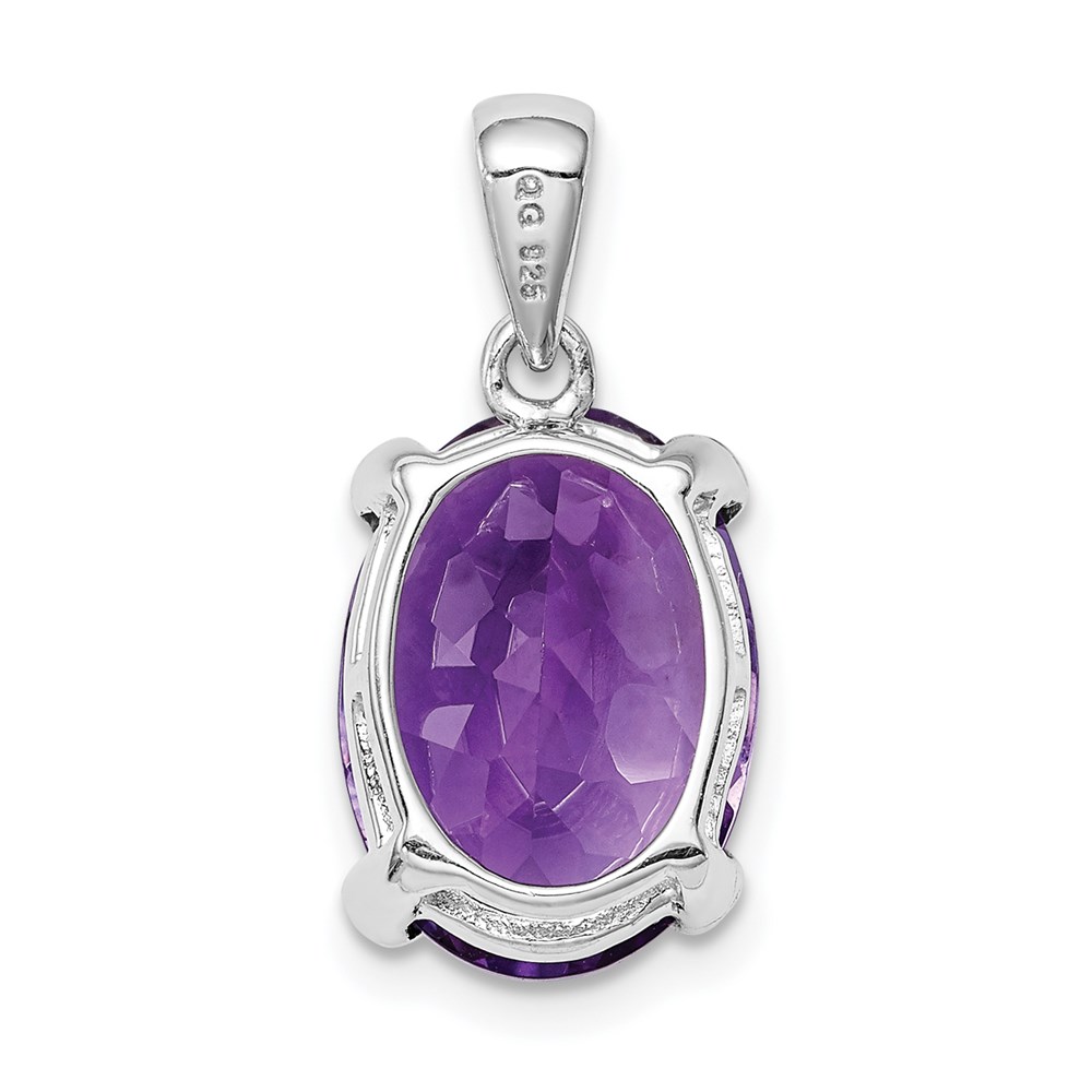 Sterling Silver Rhodium Plated Amethyst and Diamond Pendant