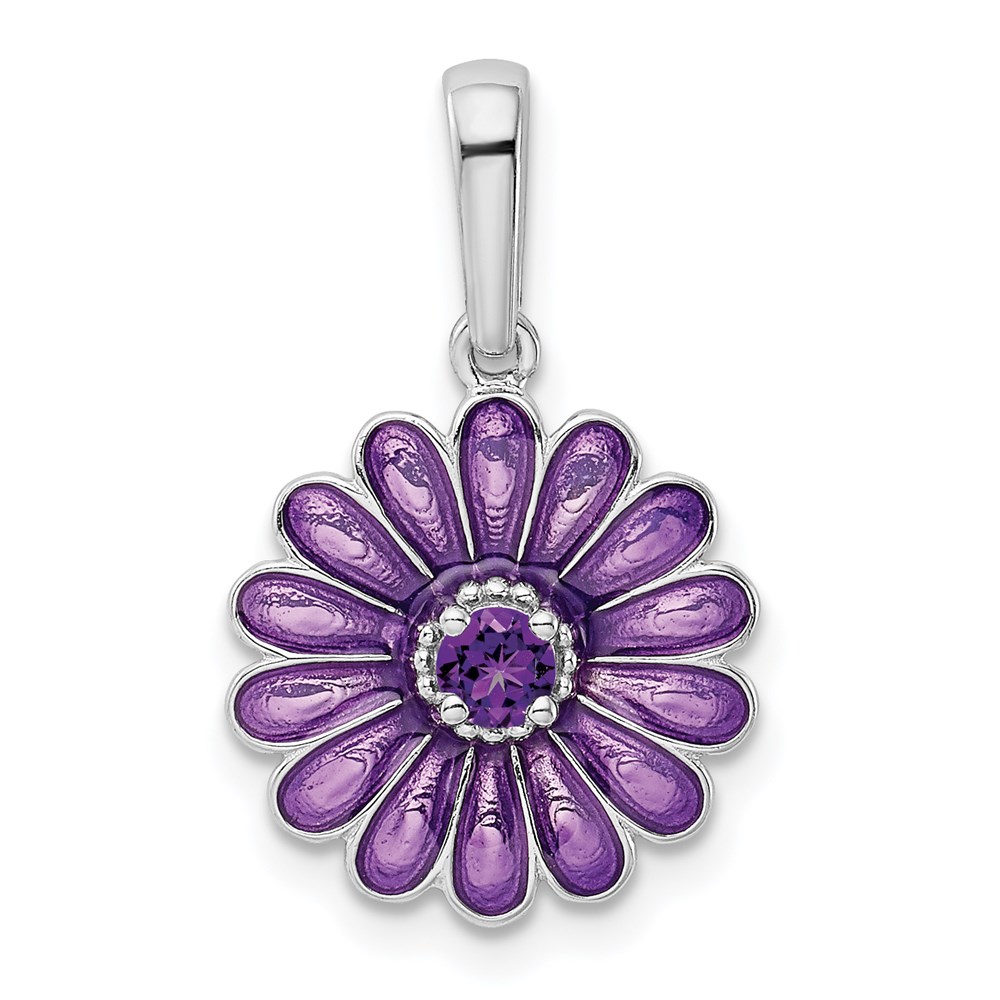 Sterling Silver Rhodium-plated Amethyst and Enamel Pendant