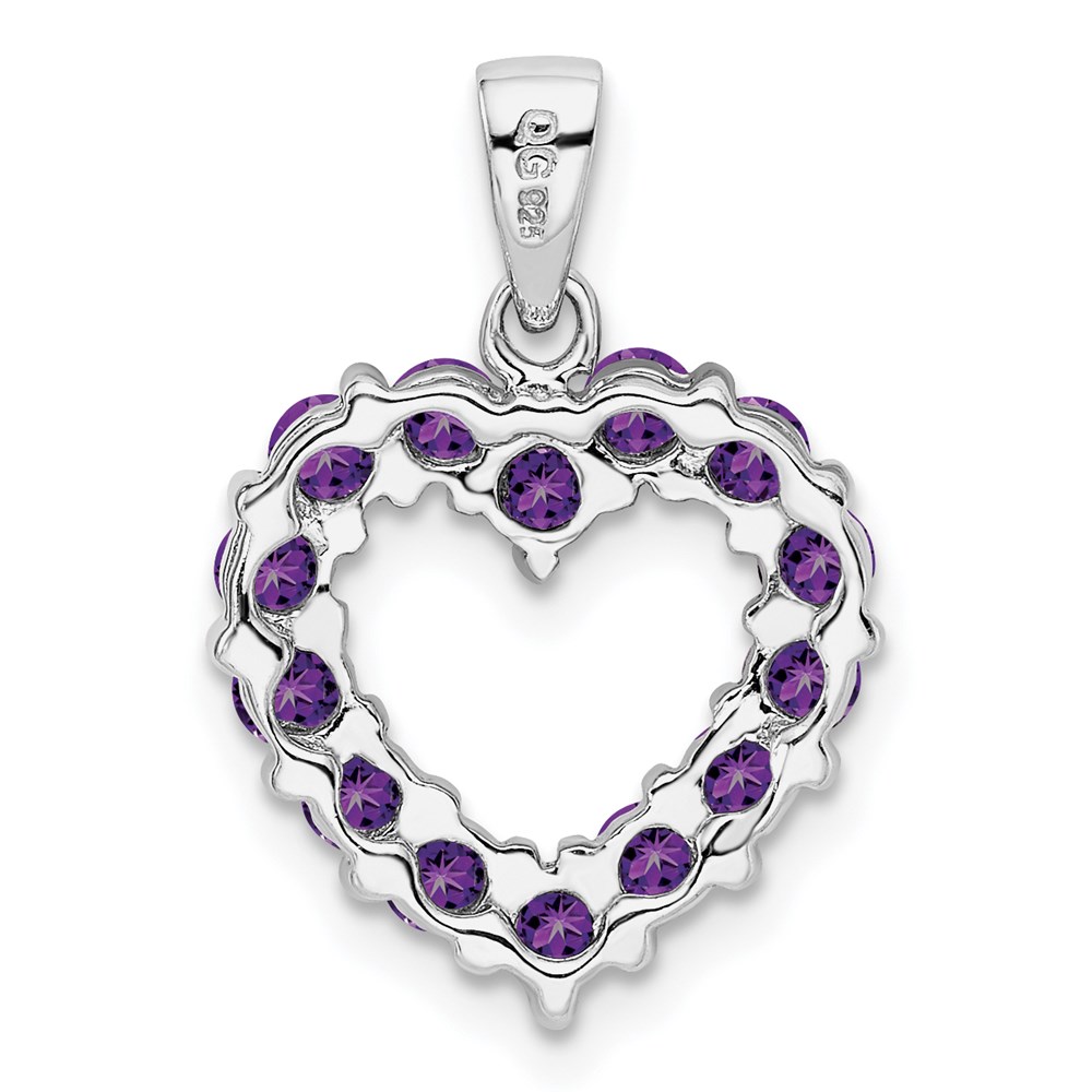 Sterling Silver Rhodium Plated Amethyst Heart Pendant