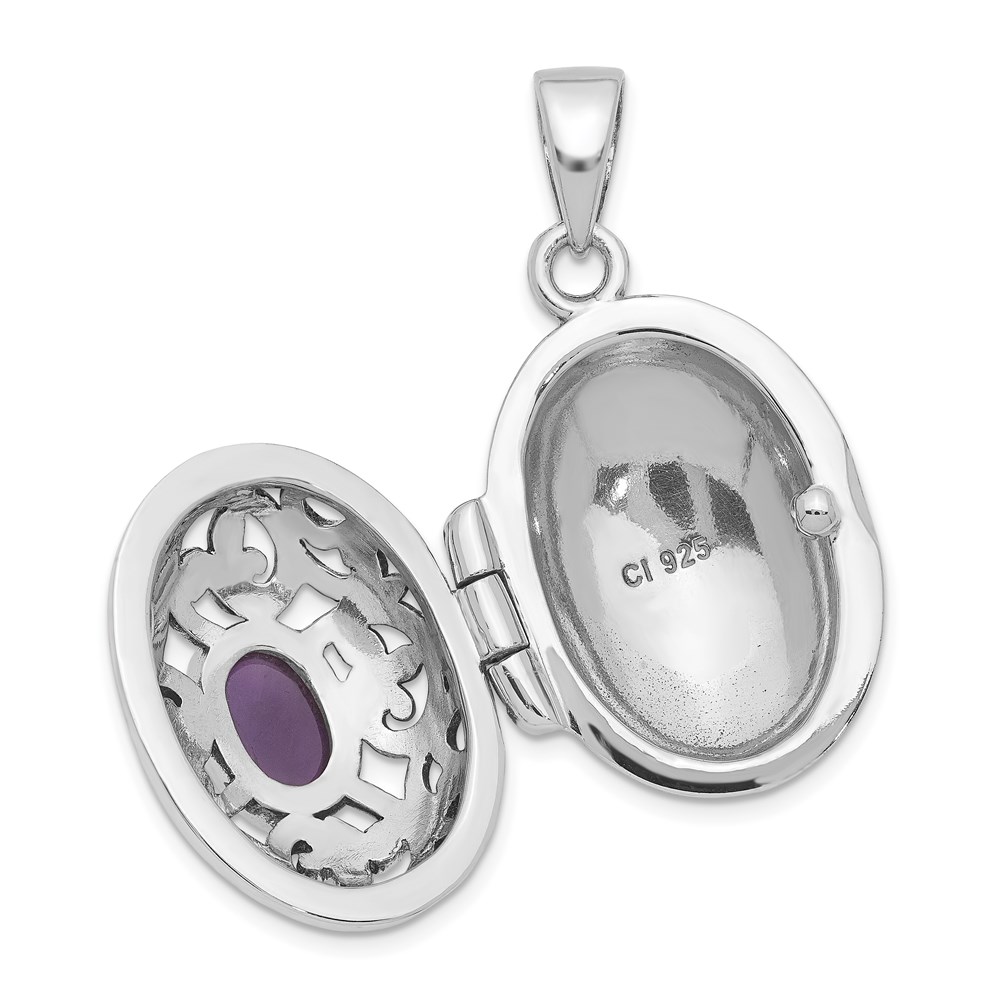 Sterling Silver Rhodium-plated and Antiqued Amethyst Locket