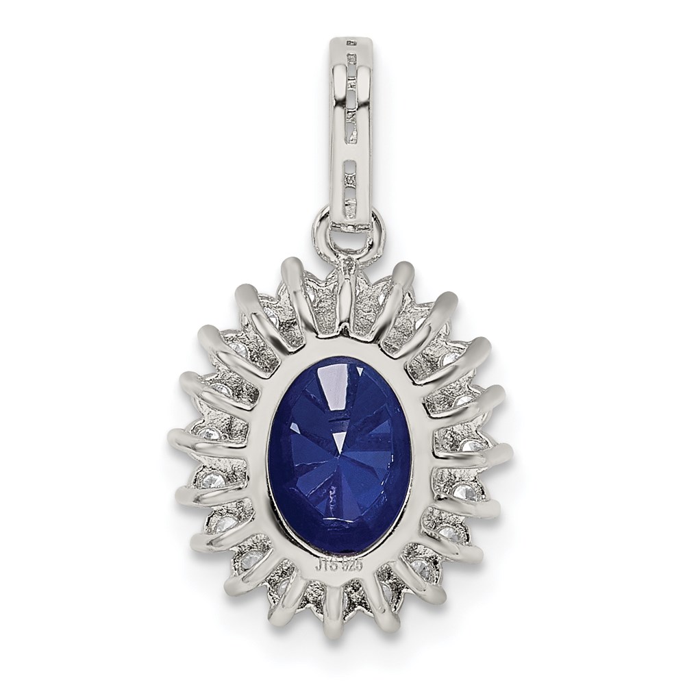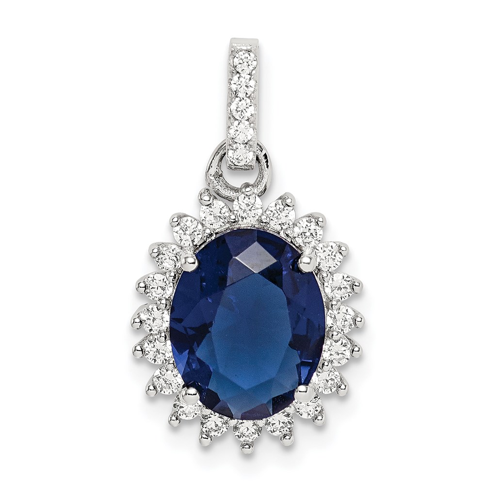 Sterling Silver Rhodium-plated Blue and Clear CZ Pendant