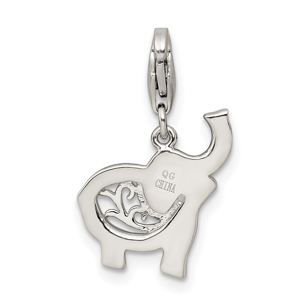 Sterling Silver Rhodium-plated Blue Enameled Elephant Charm