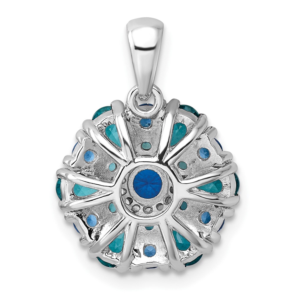 Sterling Silver Rhodium-plated Blue/Green Nano Crystal & CZ Floral Pendant