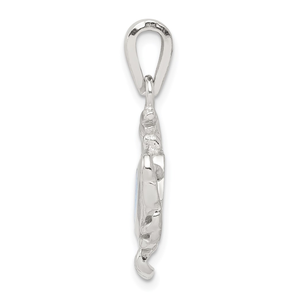 Sterling Silver Rhodium-plated Blue Inlay Created Opal Crab Pendant