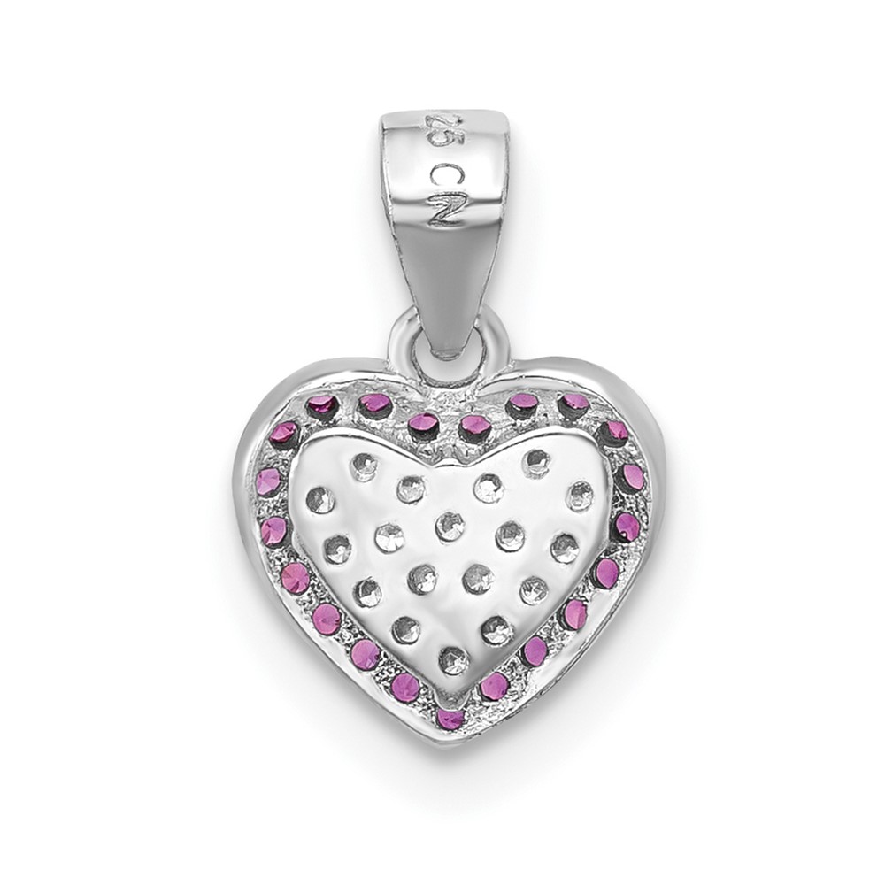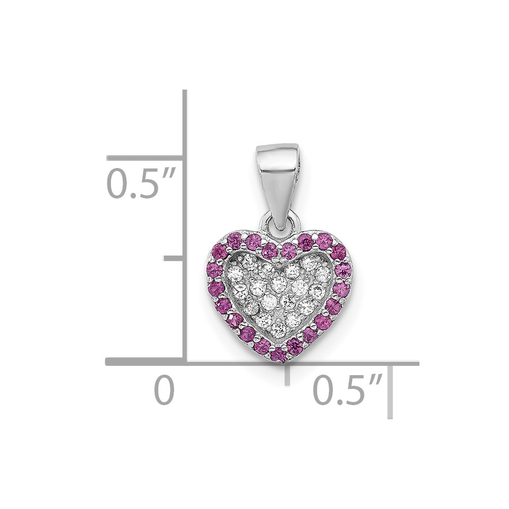 Sterling Silver Rhodium-plated Clear and Pink CZ Heart Pendant