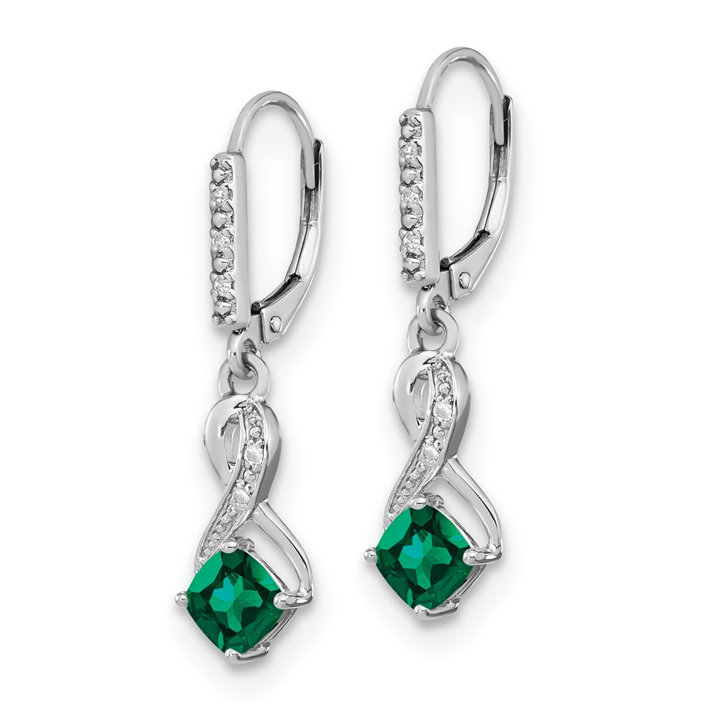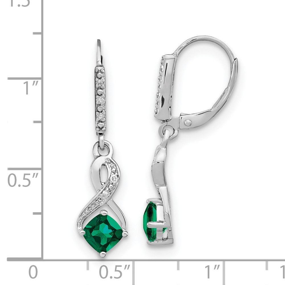 Sterling Silver Rhodium-plated Created Emerald and Diamond Earrings