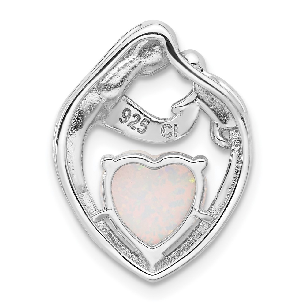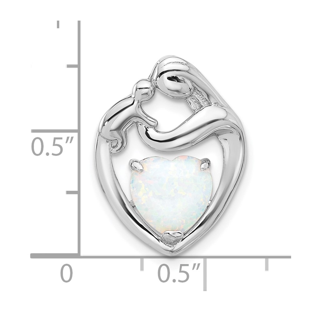 Sterling Silver Rhodium-plated Created Opal Mother/Child Heart Slide