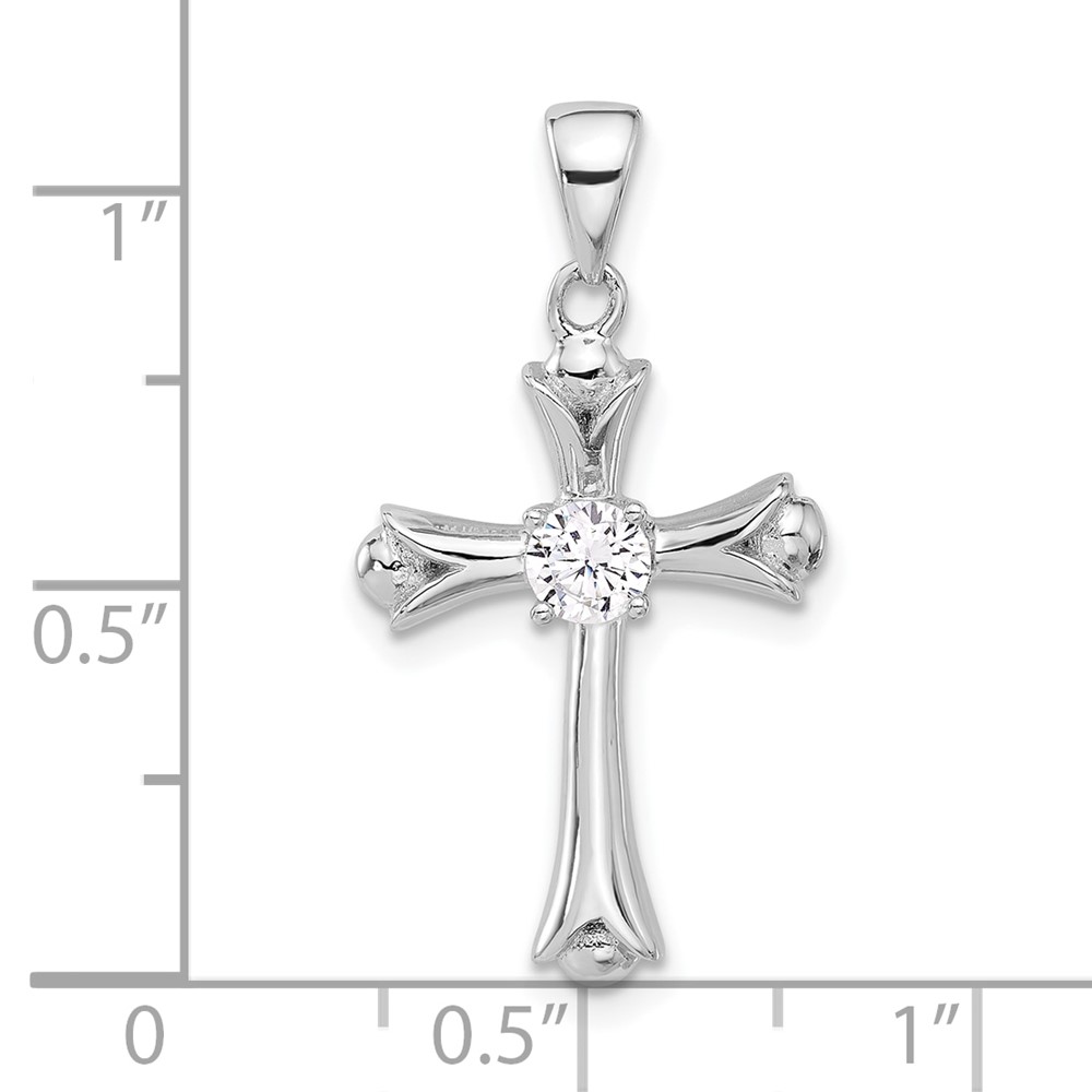 Sterling Silver Rhodium-plated CZ Budded Cross Pendant