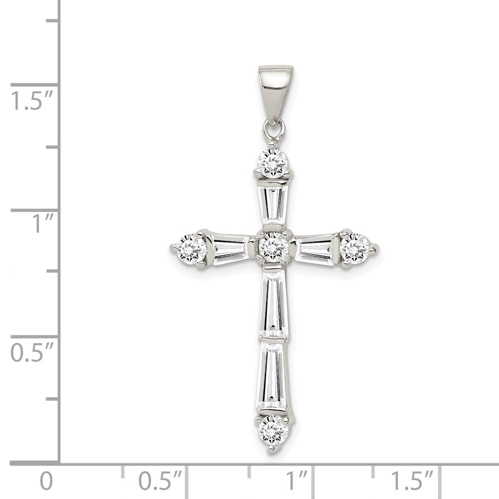 Sterling Silver Rhodium-plated CZ Cross Pendant