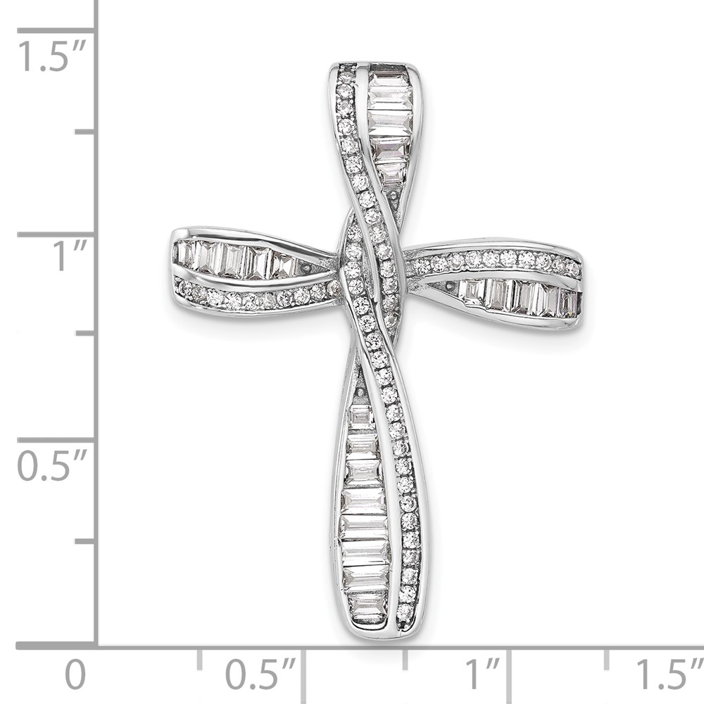 Sterling Silver Rhodium-plated CZ Cross Pendant Slide