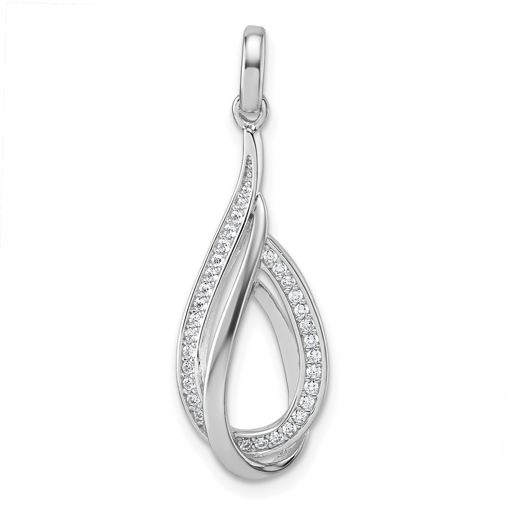 Sterling Silver Rhodium-plated CZ Polished Tear Drop Swirl Pendant