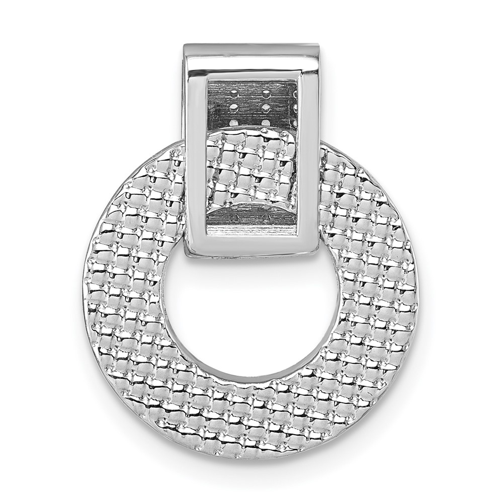 Sterling Silver Rhodium-plated CZ Polished Textured Moveable and Reversible Circle Doorknocker Pendant